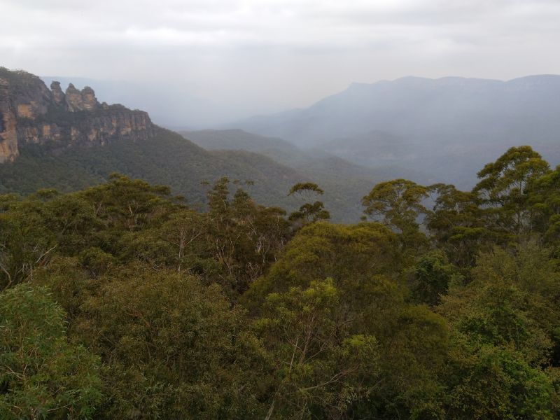 Susi ist unterwegs nach Wentworth-Falls. Wahrscheinlich genau dahin wo wir mittags schon so viele Feuerwehrautos gesehen hatten. In Sydney soll es richtig regnen - hier ist es noch trocken. Und es riecht gerade stark nach Rauch.