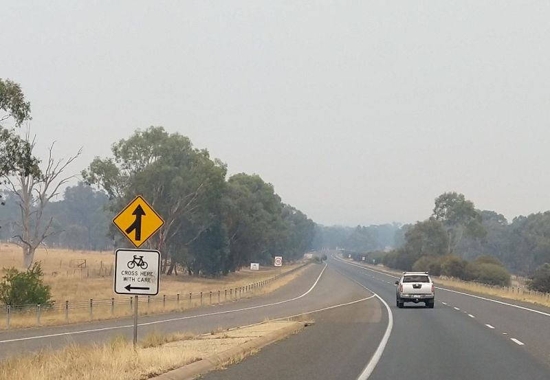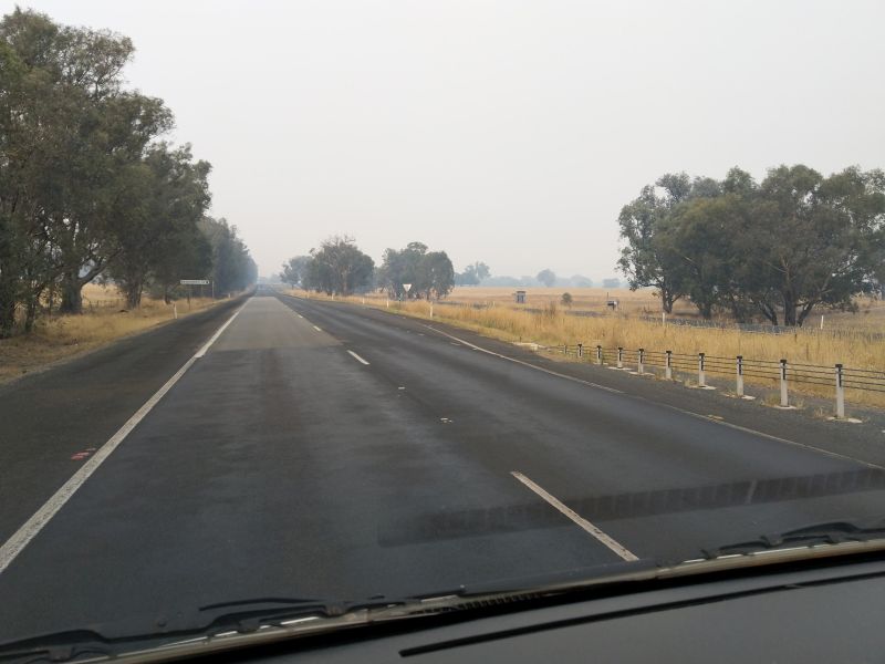Beim Frühstück riecht es nur wenig nach Rauch und der Himmel ist leicht diesig. Wir fahren heute Richtung Wangaratta. Dort gibt es eine Touriinfo wo wir weiter sehen werden.