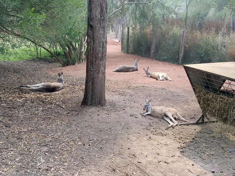 Healesville Sanctuary hat uns Pauline aus der hiesigen Touriinfo empfohlen und es liegt eh fast auf dem Weg. Zuerst geht es durch grünen Wald - einfach ungaublich nach der Dürrestrecke die wir bisher hatten. Es ist immer noch diesig, aber die Landschaft wirkt ganz anders. Kurz drauf fahren wir durch Weinberge im Yarra Valley. Heute wird uns wirkich was geboten. Stattliche Häuser laden zur Weinprobe und Farmen bieten verschiedene Beeren an. Es ist wie in einer anderen Welt.