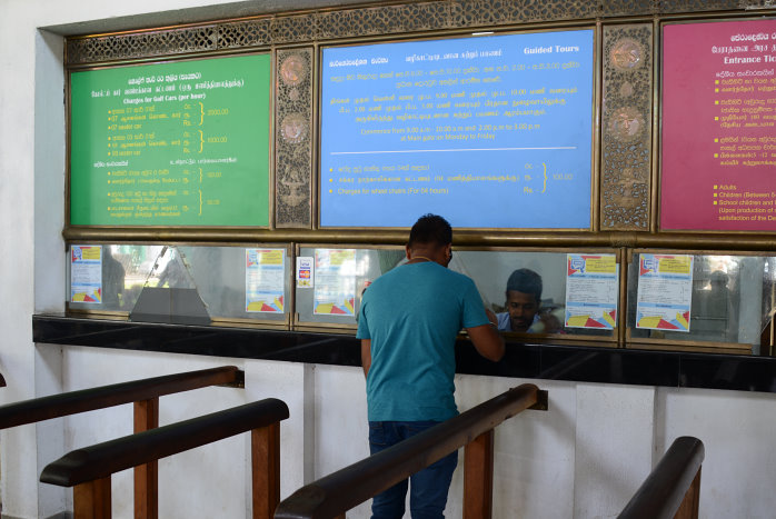 Über kleine Seitengäßchen schlängeln wir uns durch Kandy. In einer Gasse werden Putzartikel, in einer anderen Gewürze oder Aluminiumtöpfe angeboten. In jeder Gasse was anderes. Bei einem Strassenverkäufer gibt es für die restlichen 5 Rupien eine Reiskugel mit Chilli, eingepackt in einem Blatt aus einem vollgeschriebenen Schulheft. Sehr orginell. In einer etwas breiteren Straße trinken wir einen Passionfrucht- und einen Nellissaft, eine grüne Frucht die es hier gibt. Alle sitzen in einem kleinen Raum an der Wand und schlürfen genüßlich ihren Saft oder essen Obstsalat. To-go gibts nicht. Nach 2 Stunden in der Stadt reichts dann auch. Die Atemwege und Ohren sind heftig gereitzt. Eigentlich wollten wir länger bleiben.