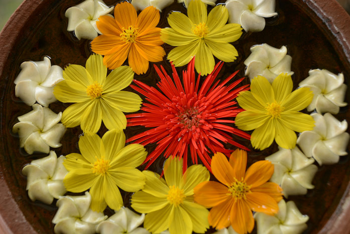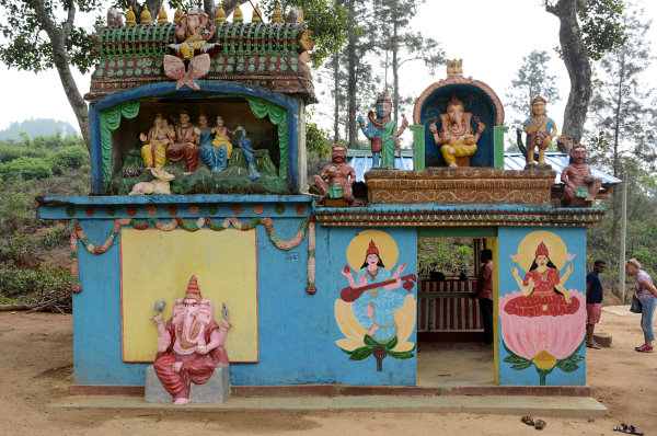 Ein weiterer Punkt heute ist der Besuch eines Hindutempels. Er ist der Gottheit Ganesha gewidmet. Während wir warten, dass die Famillie vor uns fertig ist, fängt es an zu schütten. Ein Supergewitter. Solch schönen Donner gibt es bei uns selten. Wir sind dran und ein Freiwilliger soll dem Mönch/Priester assistieren. Dummerweise stehe ich gerade am nächsten und werde quasi ausgewählt. Blöd wenn man keine Ahnung hat was man zu tun und vor allem zu lassen hat. Ich muss aber nur sechsmal einen silbernen Behälter mit Wasser und Sandelholz oder Milch über die Elefantenfigur giessen. Danach werden Früchte gesegnet und ein Teil davon muss ich irgendwie auf der Figur befestigen - als Spende an die Gottheit. Diese Früchte und etwas Milchreis bekommt danach jeder zum essen auf einem Palmblatt gereicht. Mit dieser Puja-Zeremonie haben wir für eine gute Reise und um Gesundheit gebeten.