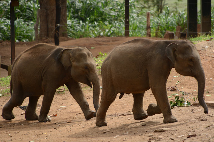 Wir bekommen ein frühes Frühstück ohne alle anderen Gäste. Um 7 Uhr geht es dann los. In Udawalawe, etwa 1,75 Stunden später, besuchen wir das Elephant Transit Home. Hier werden verlassene oder kranke Kleinstelefanten wieder aufgepäppelt. Wir sind deswegen so früh raus um ihnen bei der ersten von 3 Mahlzeiten zuzusehen. Jeder der bestimmt 30 Elefanten bekommt einen gehörigen Schluck Milch und darf sich dann an Blättern und Ästen versuchen. Die sind schon drollig. Fast noch mehr Spaß machen allerdings die Schulkinder, die ebenfalls zum Zuschauen gekommen sind. Es sind mehrere Busladungen da und ein ganz schönes Gewusel. Sie lassen sich bereitwillig fotografieren und haben offensichtlich genausoviel Spaß dabei wie wir. Dann kommt noch meine Sofortbildkamera raus und dann ist der Teufel los. Nach 5 Bildern muß ich dann aber die Reißleine ziehen. Mir gehen die Filme aus. Nach dem das Eis, wenn es denn eines gab, gebrochen war, versuche ich mal was anderes. Ich gebe einem Schüler meine Kamera und er soll die anderen knipsen. Erst zaghaft und dann doch mit Lust dabei versuchen es einige Jungs. Nur ein Mädchen traut sich dann auch mal dran. Sie sind so um die 8/9 Jahre alt und meine Kamera ist etwas zu schwer für sie. Tut dem Spaß aber keinen Abbruch. Die Elefanten sind dann schon fast nur noch Beiwerk. Das war echt klasse!