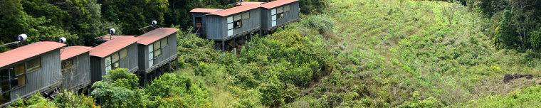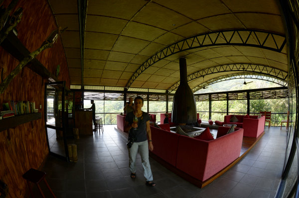 Jeder bekommt ein Paar Leechsocks. Sehr dicht gewebte Baumwollsocken durch die die Blutegel nicht durchkommen. Die gibts hier nämlich reichlich. Zuerst sehen wir schon mal 2 sehr schöne Affen im Baum und dann geht es in die Botanik. Zimtbaum, Ratan, Pfeffer, wilder Ingwer, Farne, Ficusse...... Fast jede Pflanze hat auch noch irgendwelche Heilwirkungen. Unglaublich. Man kommt aus dem Staunen gar nicht raus. Geckos und Zikaden sitzen hie und da auch gelangweilt rum. Der Wald ist nur blöderweise so dicht und dunkel, dass man kaum fotografieren kann. Als es langsamm dunkel wird und ab und an Donnergrollen zu hören ist drehen wir nach 2 Stunden um.