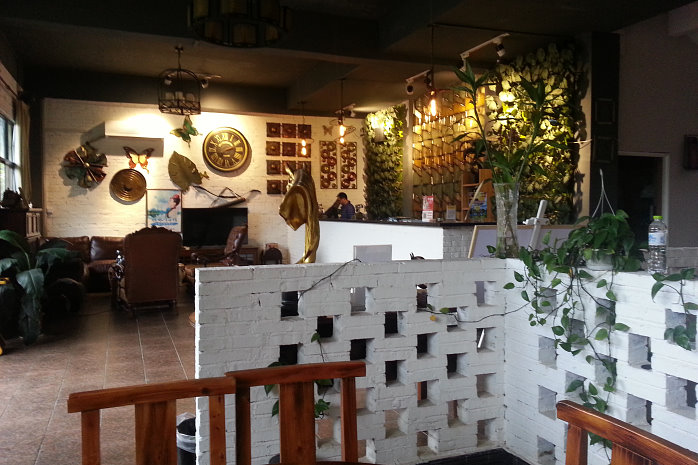 An einer Kreuzung in einem Hotel steht ein Schild auf dem Kaffee angepriesen wird. Wir gehen rein. In einem großen Foyer sitzt ein Mann auf der Couch und doddelt auf dem Handy rum. Bei ihm bestellen wir 2 Kaffee. Die Kaffeemaschine sieht verheissungsvoll aus. Wir hören sogar dass Kaffee gemahlen wird. Aber dann passiert sehr lange nichts. Die Maschine hat sehr viele Hebel, Knöpfe und sonstige Einstellmöglichkeiten. Immer wieder schaut er aufs Handy. Schaut er auf youtube wie die Maschine funktioniert? Nach 20 Minuten bekommen wir 2 Tassen Kaffee. Zucker holt der Mann auf Nachfrage mit einer Pinzette aus einer Pappschachtel. Die Milch wird Elke in Form einer Tube von Nestlé gereicht. Eine Geruchsprobe ergibt, dass frau den Kaffee doch lieber schwarz zu sich nimmt. Wir bezahlen 30 Yuan und ziehen weiter. Nach 2 Stunden sind wir wieder im Hotel. Das hat Spass gemacht. UND es hat nicht geregnet – das ist der Rekord der letzten drei Tage!