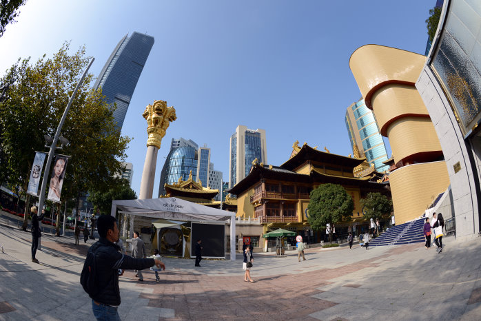 Wir gehen zum Bund, einem beliebten Bummelboulevard von dem man auf die Skyscraper der Banken und Versicherungen schauen kann. Auch auf den Shanghai Tower, der alles überragt. Das Licht ist jetzt schon bescheiden und die Lightshow der Wolkenkratzer noch nicht aktiv. Das ist aber auch ganz nebensächlich, denn erstens hatten wir das schon sehr schön gestern und zweitens sind die Menschen, die sich permanent selbst fotografieren, viel interessanter. Die Chinesen sind wirklich ein Volk von Selbstdarstellern. So krass habe ich das noch nie gesehen.