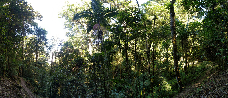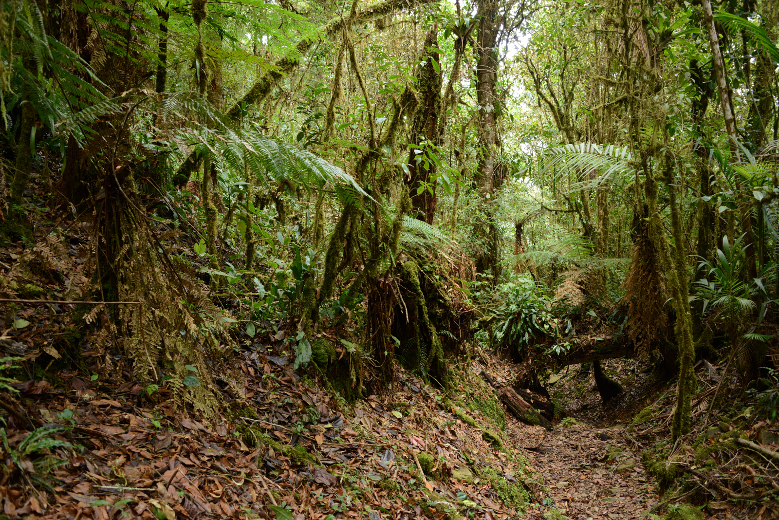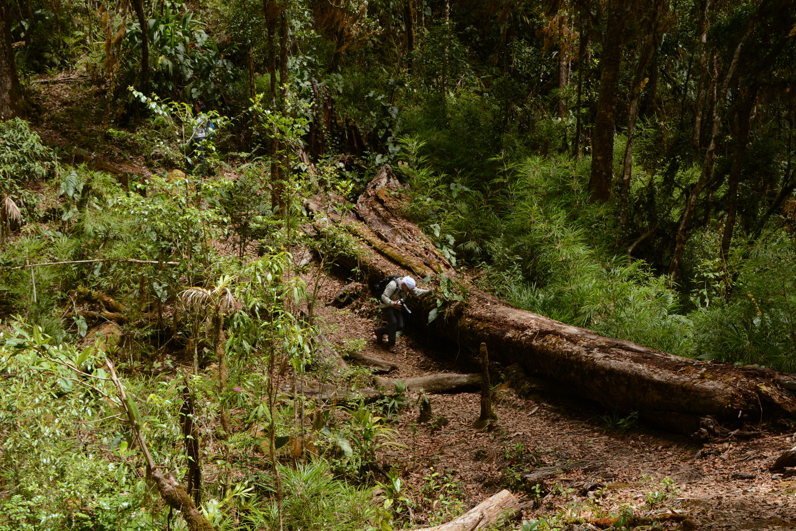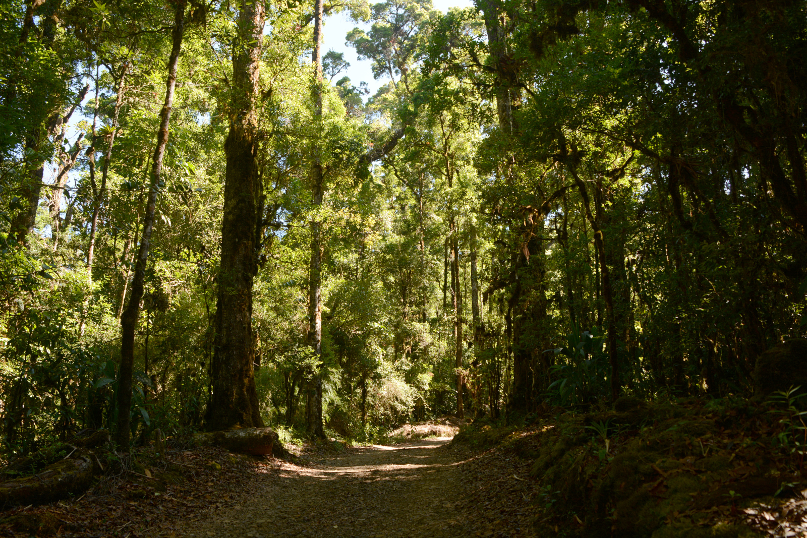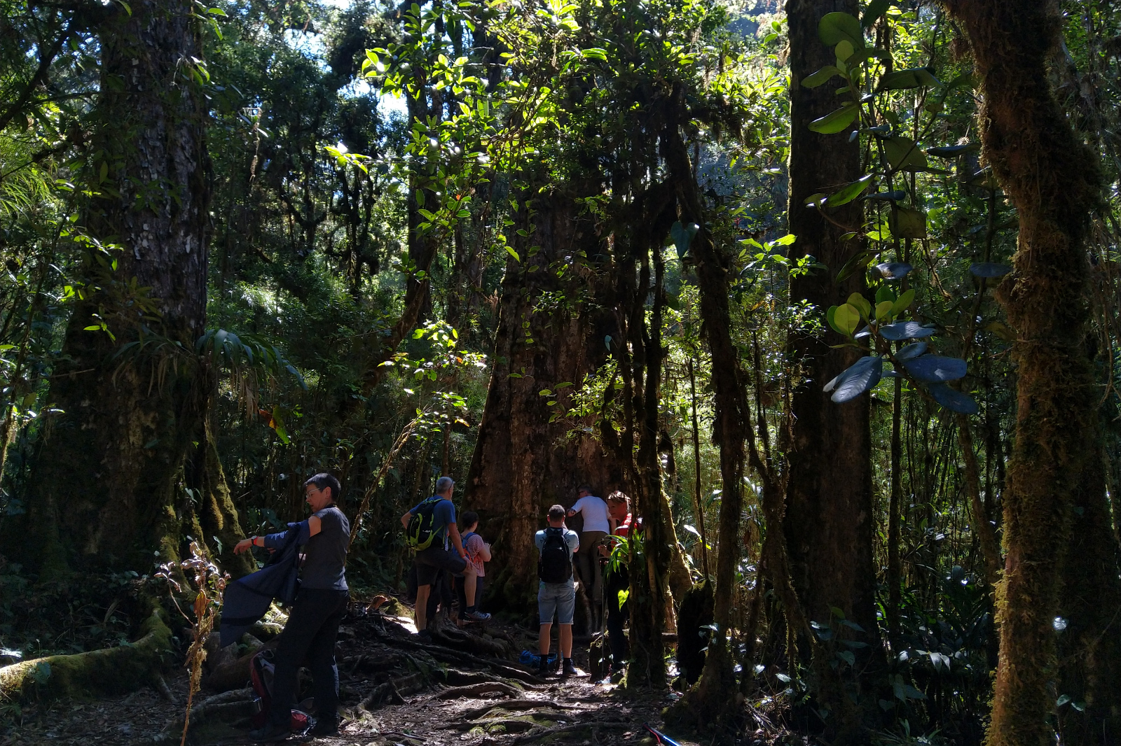 Heute steht eine Wanderung mit 400 Höhenmetern an. Absolut gesehen ist das ja zu bewältigen, aber bei über 2300 starten .... Um 8 geht es direkt von der Lodge los und gleich richtig steil bergan. Die ersten 2Km gehen über eine Forststraße, denn zum Start der eigentlichen Runde kann man für 30$ mit dem Jeep gebracht werden.