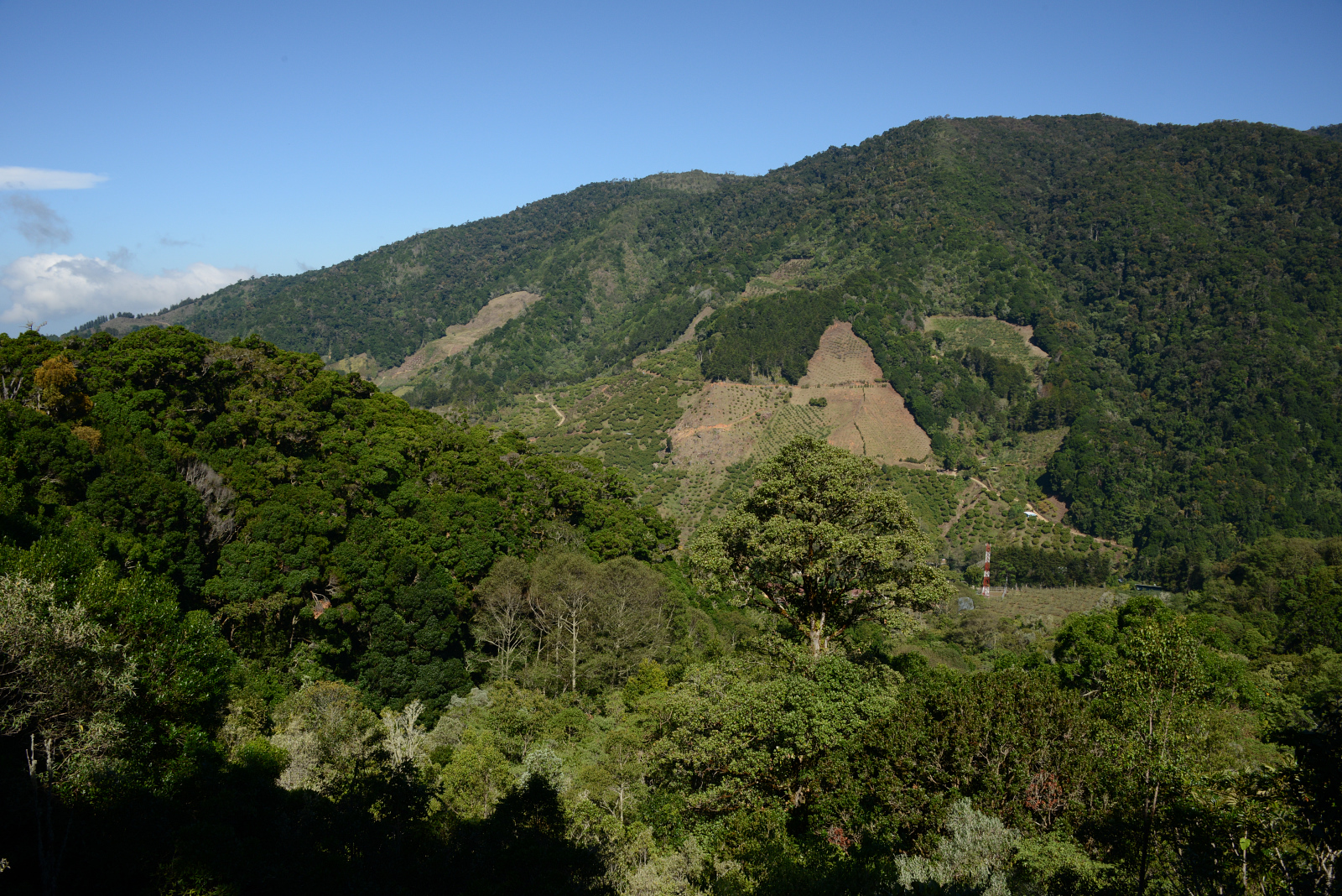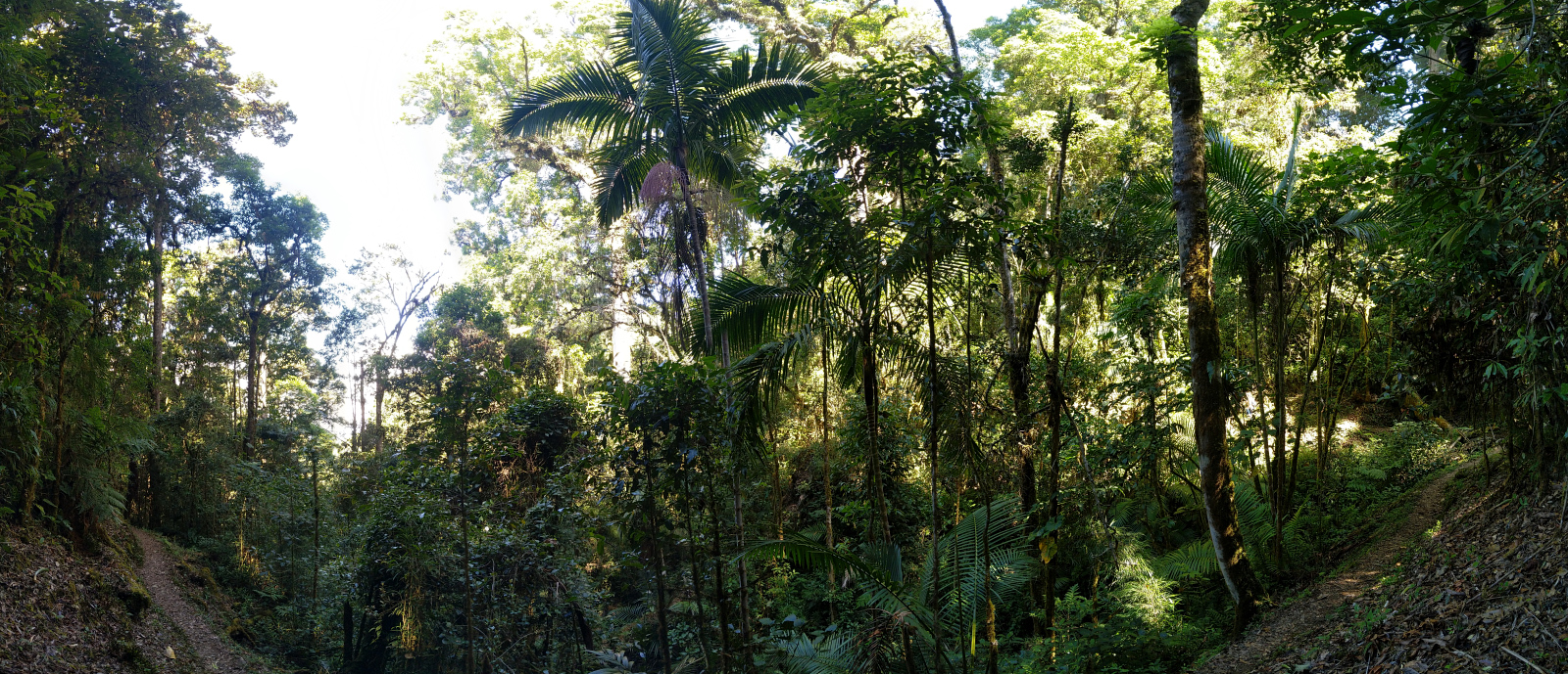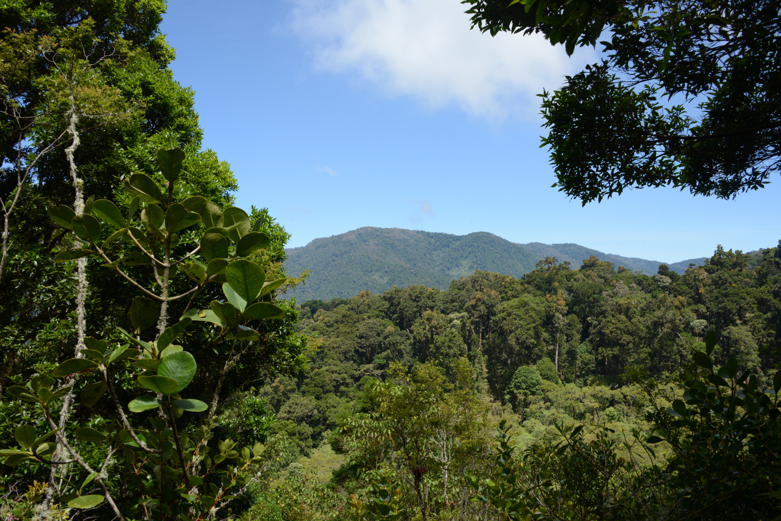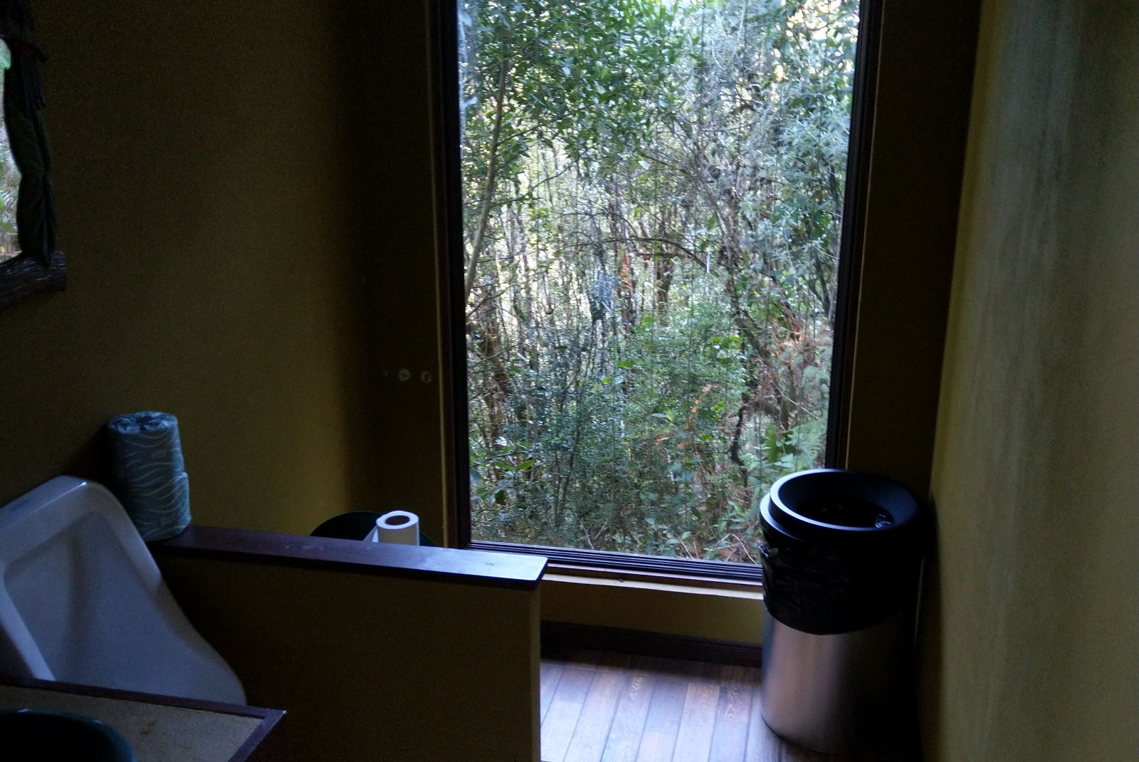 Nach den 2Km kommen wir an einer Aussichtsplattform an und können ins Tal schauen. Das Beste ist allerdings die Toilette. Auf der Schüssel sitzend schaut man durch ein riesiges Fenster in den Nebelwald.