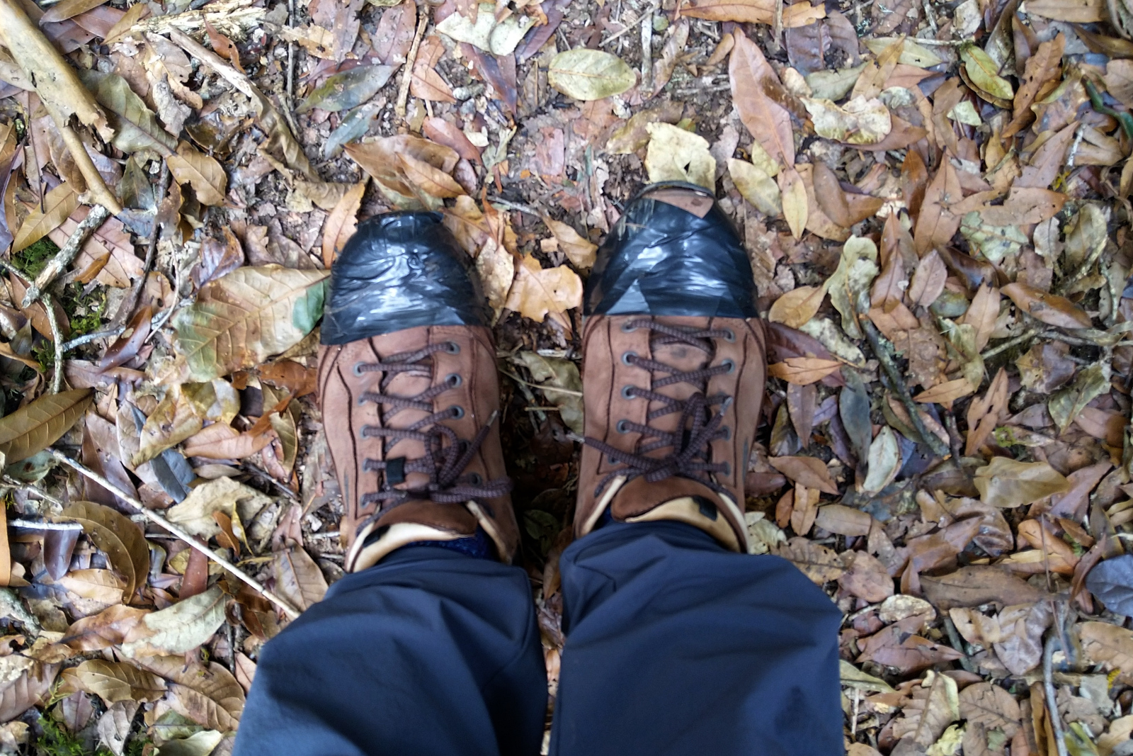 Dann geht es auf schmalen Pfaden durch den Wald; immer leicht ansteigend. Es gibt wunderschöne Bäume und Pflanzen zu bestaunen. Die Runde ist nur 6Km lang, aber ich bin schon gut verschwitzt. Wir kommen an eine 1000 Jahre alte Eiche – wow. Das ist echt beeindruckend. Mein zweiter Schuh gibt auch noch den Geist auf. Ich hab das Tape mit dabei und lass das von Elke verbinden. Weiter geht es durch den teils trockenen teils nassen Wald. Gegen Mittag sind wir in der Lodge zurück.