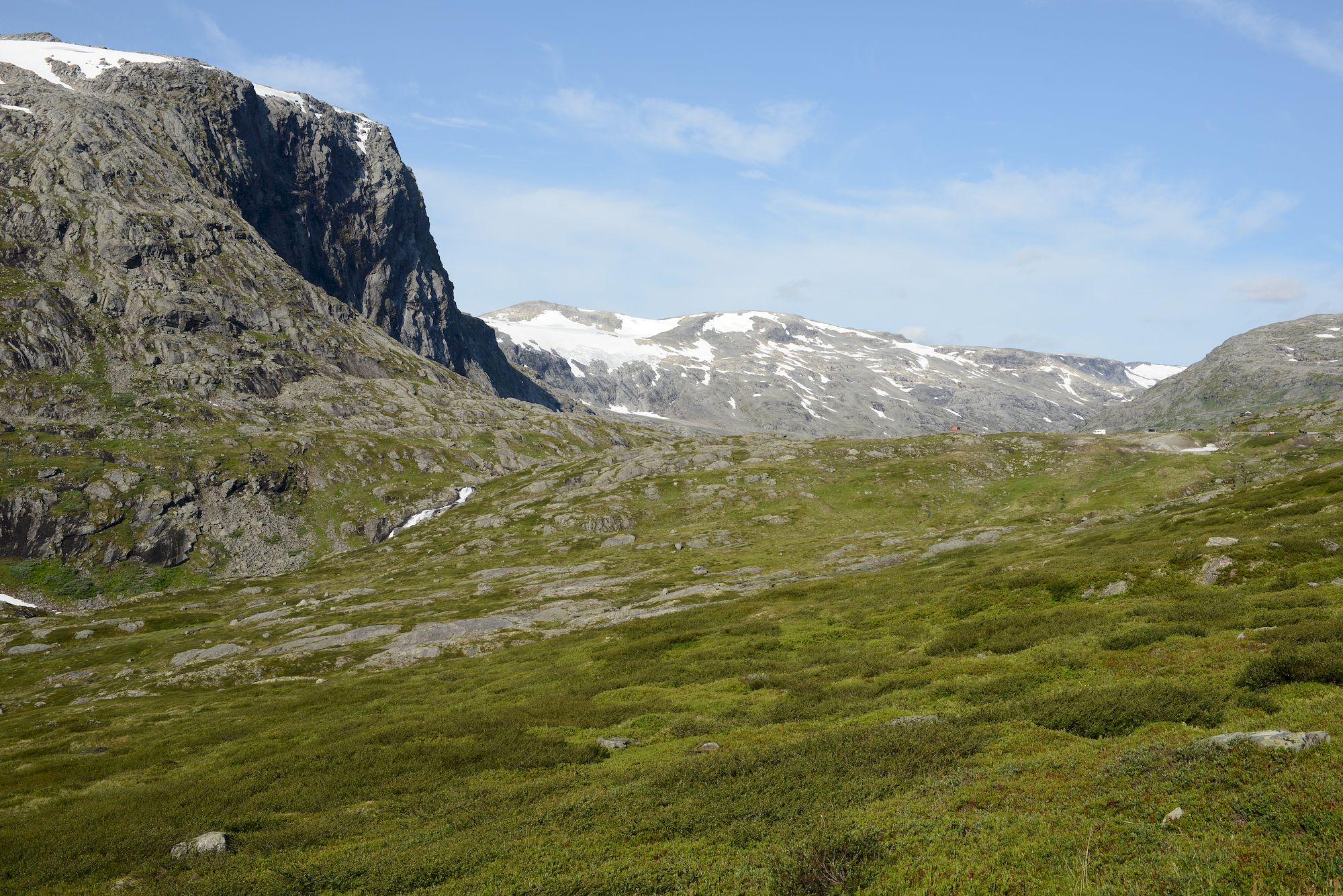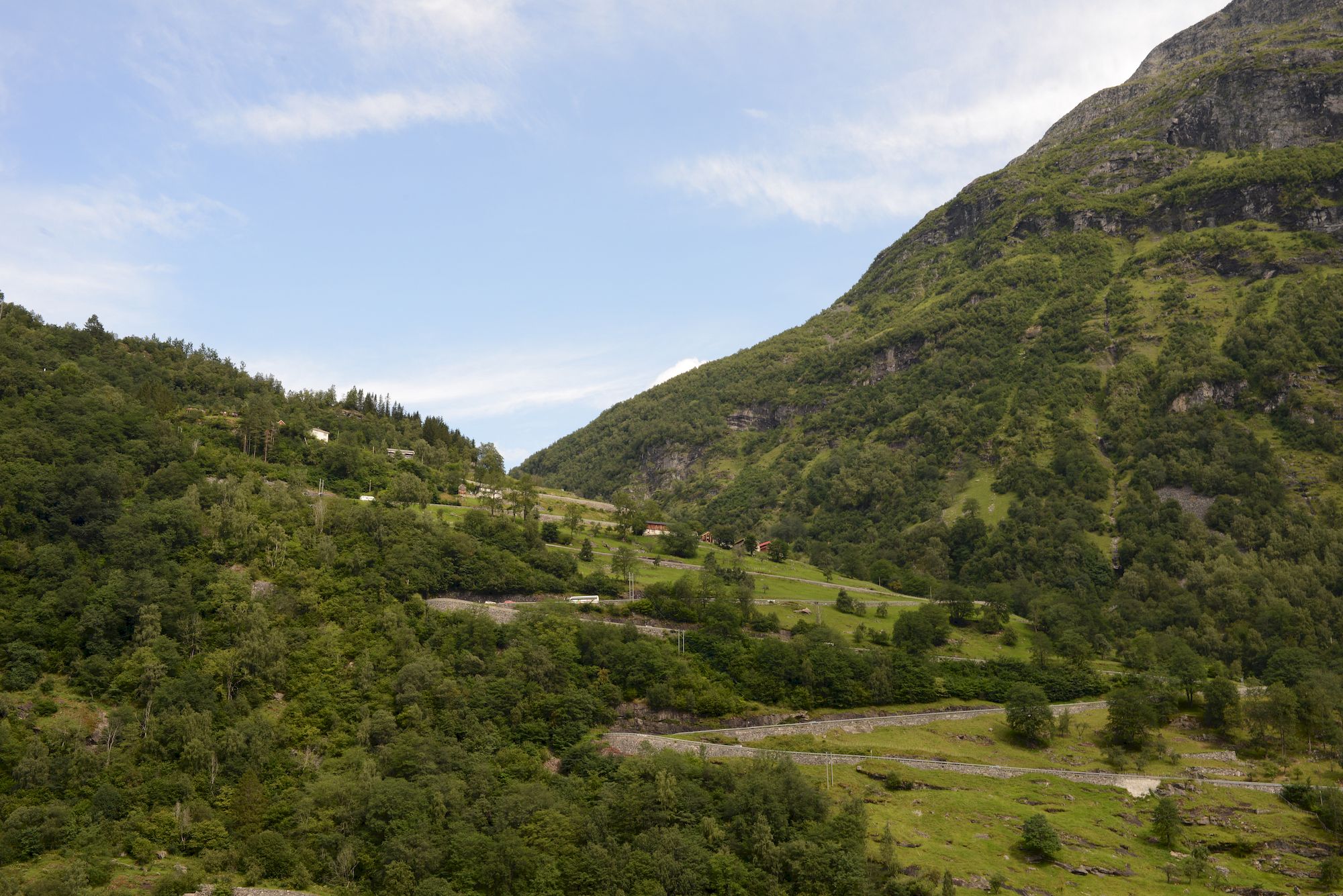 Nach Hellesylt fahren wir die 60 weiter zum Hotel zurück. Die Landschaft ist nicht mehr so spektakulär, also nur noch schön. Das Wetter ist nach dem Fjord wieder sonnig mit blauem Himmel.