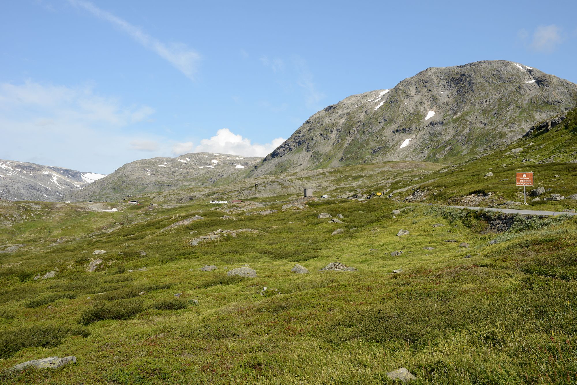 Geirangerfjord. Zuerst fahren wir ein kurzes Stück die Strecke zurück, die wir auf der Herfahrt bei schlechtem Wetter schon mal gesehen hatten. Alles sieht jetzt ganz anders aus. Wir halten nochmals an der Stelle wo die Straße zum Fjord abgeht. Das hat uns schon bei schlechtem Wetter/Sicht gut gefallen. Am Parkplatz am Abzweig stehen sehr viele Wohnmobile, die da übernachtet haben. Das ist rundrum total schön, aber halt an vielbefahrenen Straßen. Das muss man schon mögen. Toiletten gibt es da auch nicht und es sind einige mit normalen Autos da, in denen sie schlafen.
