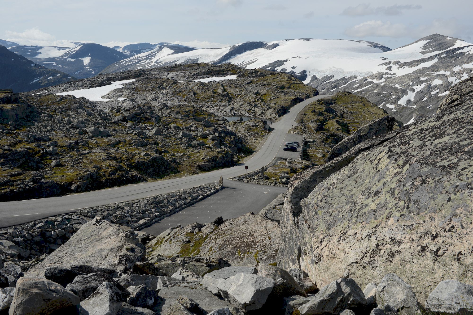 Wir biegen Richtung Geirangerfjord ab und die Landschaft wird zunehmend imposanter. So schön hatten wir uns das nicht vorgestellt. Wir schrauben uns auf 1500m hoch. Leider gibt es so gut wie keine Haltebuchten um Fotos zu machen, oder sie sind von Wohnmobilen blockert. Das letzte Stück zum