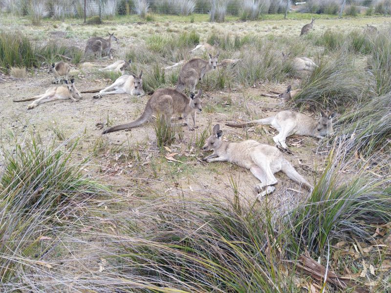 Auf einer großen Wiese sind unheimlich viel Kängurus jeglicher Größe und warten auf Touris mit Futter. Sie kommen angehoppelt und betteln teilweise. Eigentlich nicht so unser Ding, aber beim füttern kann man sie anfassen und wo kann man das schon mal. Wir verbringen bestimmt eine ganze Stunde damit die Viecher zu fotografieren. Es ist einfach zu schön.