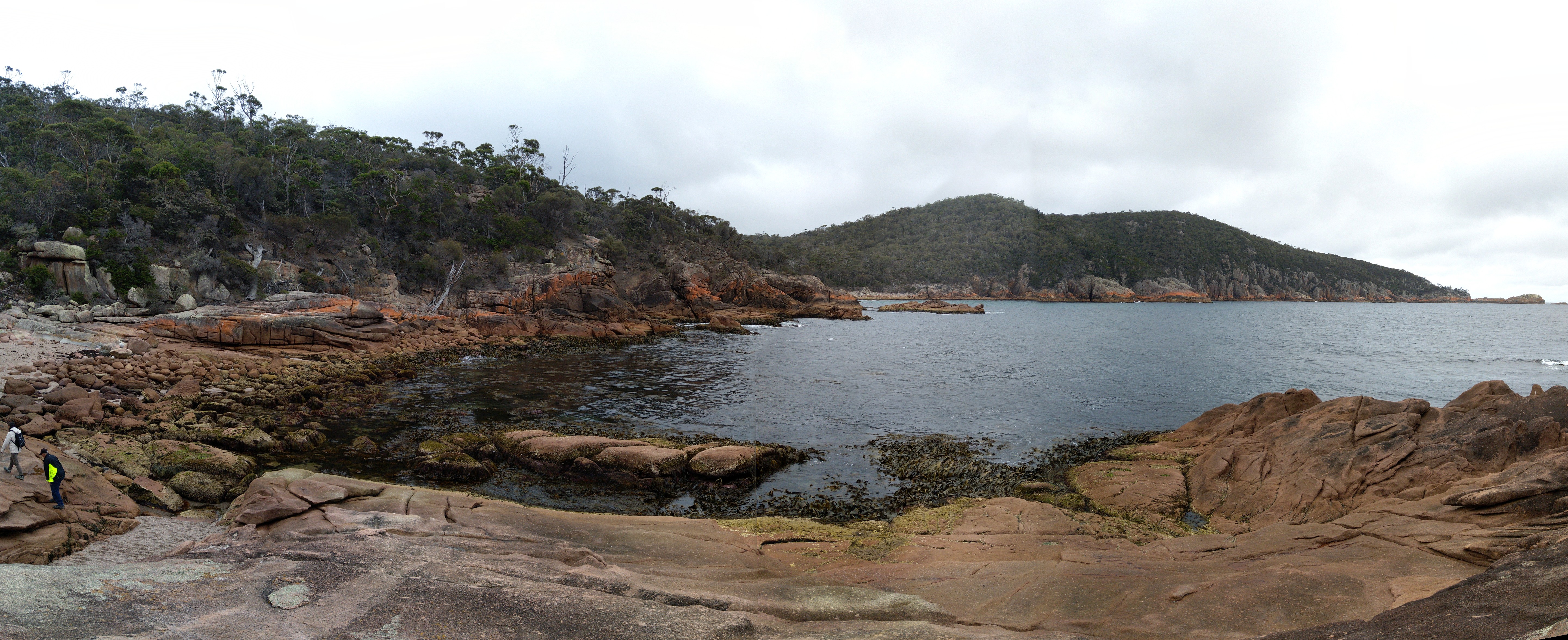 Freycinet Nationalpark fahren. Im Visitorcenter holen wir uns Informationen zu den verschiedenen Walks die es hier gibt. Mir fällt ein, dass ich mal nach dem rotblühenden Baum fragen könnte. Tatsächlich weiß eine Dame hinter dem Counter das es ein