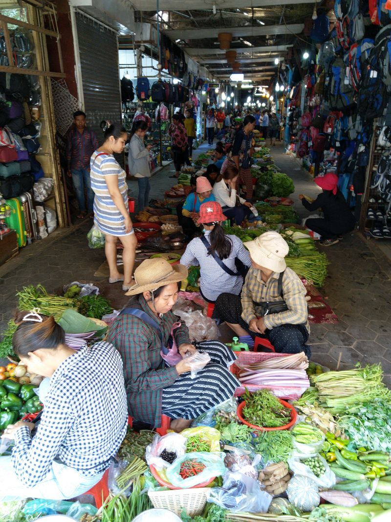 Wir stehen nur wenig später auf als sonst. Wir laufen los, zuerst in Richtung der königlichen Gärten. Leider ist davon ein großer Teil wegen Arbeien abgesperrt. Dann lassen wir uns treiben in Richtung der gestern Abend vollen und lauten Pub Street. Am Morgen ist hier noch nicht viel los und so können wir die umgebenen Gassen mit den vielen kleinen Geschäften in Ruhe erkunden. Fast in Ruhe, denn Thomas plagen Durchfälle - also muss es manchmal ziemlich schnell gehen ...
