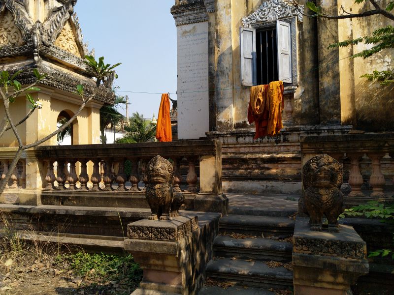 Elke will mich unbedingt zum Bartschneiden schicken, aber scheinbar sind die hier Montags auch geschlossen oder sind aufm Rosenmontagszug. Ein dreifach donnerndes Helau nach Meenz:-). Ich komme heute ungeschoren davon! Nach 2 weiteren Wats sitzen wir am Ufer des Sangker River und schlabbern 2 Tonic-Water. Das ist billiger als Blubberwasser was es eh kaum gibt.