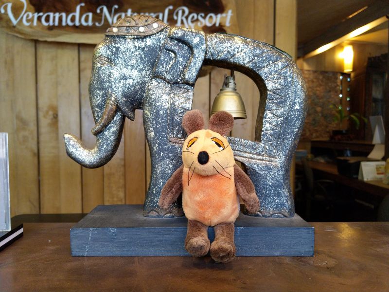Gegen 6 klingelt jemand, wir haben tatsächlich eine Klingel, und fragt in schlechtestem Englisch irgendwas wegen Essen, ob und was wir bestellen wollen. Eigentlich soll es Dinner erst ab 7 geben - der Moskitos wegen. Also machen wir uns fertig und gehen ins Restaurant. Natürlich sind wir alleine. Wir bestellen Bier, Frühlingsrollen, gebratenen Reis und Nudeln jeweils mit Seafood. Wir sind zwar nicht am Meer, aber ..... Später kommen dann natürlich die anderen Gäste. Am Nebentisch 4 Karlsruher. Auf unserer Terrasse gönnen wir uns noch ein Absackerbier.