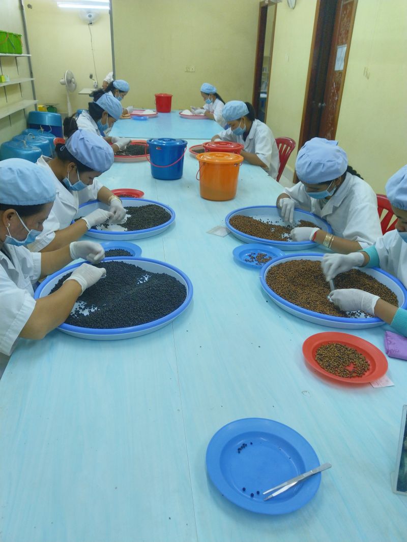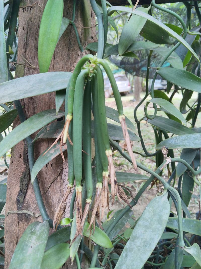 Vorher sehen wir uns in Kampot eine Cooperative an, die Pfeffer von umliegenden Farmen kauft und weiterverarbeitet. Da Pfeffer gerade nicht geerntet wird bleibt uns nur zuzusehen wie die Pfefferkörner sortiert werden. Sechs Frauen sitzen an einem Tisch und sortieren von Hand. Das gibt die beste Qualität. Vier sortieren Pfeffer verschiedener Couleur, 2 schauen im Fleur de Sel nach Verunreinigungen. Aschenbrödel läßt grüßen. Dann dürfen wir riechen und kosten. Es gibt hier weissen, roten und schwarzen Pfeffer als Körner und Schwarzen und Roten als Stange. Die junge Frau, die uns rumführt, erzäht uns die jeweiligen Eigenschaften und für was sie genutzt werden. Was ich noch nie probiert habe ist fermentierter Pfeffer - auch der in rot und schwarz. Lecker. Natürlich kaufen wir etwas zum mitnehmen. Wikipedia hat einen eigenen Artikel dazu. Mittlerweile versuchen sie sich auch an Vanillepflanzen aus Mexico und Thaiti.