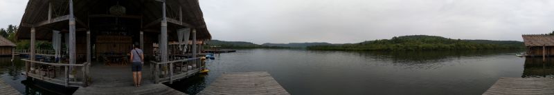 Das Eco Resort hat 12 Zimmer bzw. Hüttchen, die alle auf das Wasser gebaut sind. Sie sind nicht besonders gross, haben keine Minibar, Klimaanlage oder wifi 😬, aber ein Bett mit Moskitonetz und eine kleine Terrasse die natürlich ebenfals auf dem Wasser ist. Man versichert uns, dass es ungefährlich sei im Fluss zu schwimmen. Krokodile gäbe es keine. Nach einem Rundgang, das ist in weniger als 2 Minuten erledigt, springe ich ins Wasser. Endlich mal kühl und man kann wirklich schwimmen. Leider ist es den ganzen Tag schon bedeckt. Wird also wieder nix mit dem Sonnenuntergang.