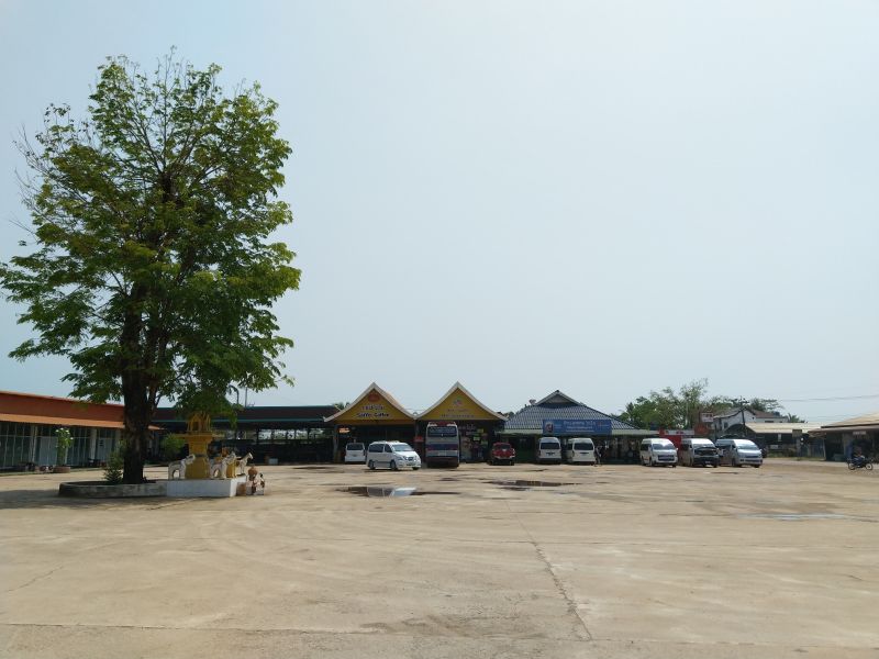 Es ist recht eng, aber die Fahrt dauert ja auch nur 3,5 Stunden. Für die ersten 100km brauchen wir 2 Stunden. Die Straße ist so lala. Ab und zu riesige Schlaglöcher und nicht geteerte Abschnitte. Es gibt dann eine Pause an einer Raststätte, so gegen 12, wo plötzlich 10 von den Bussen rumstehen. Wir gönnen uns einen Café und ein paar Drops zum Lutschen.