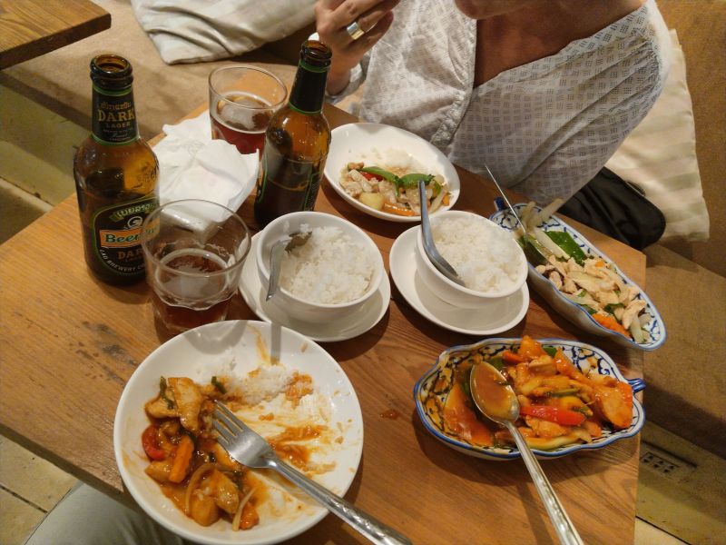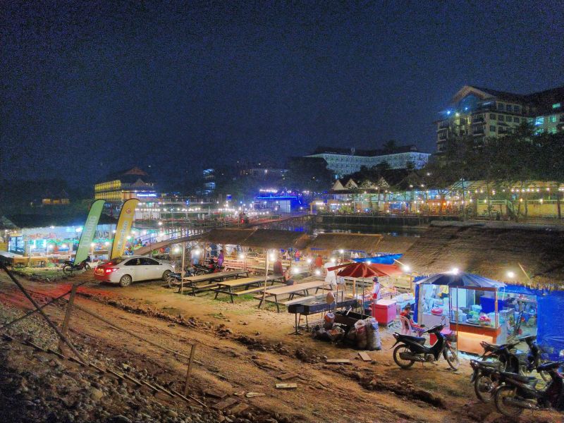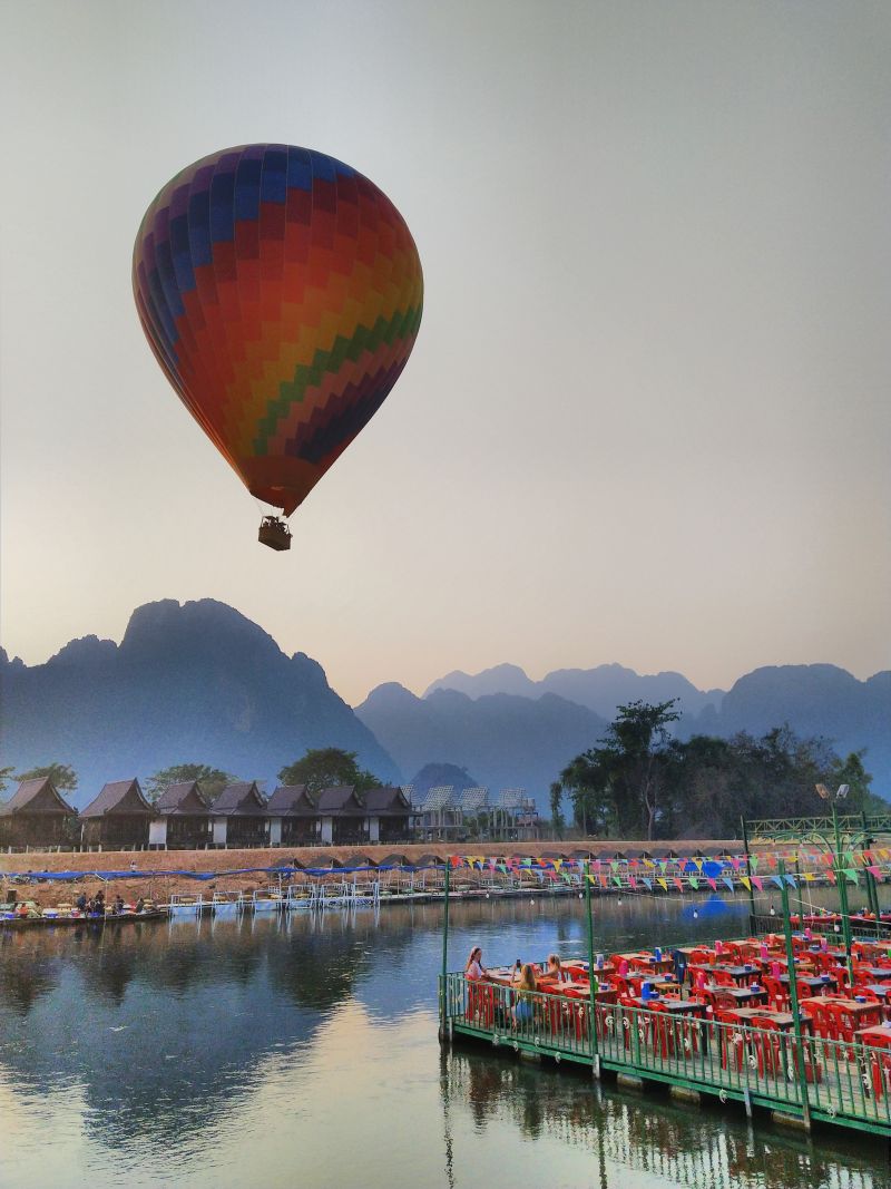Wir suchen nicht lange, sondern gehen gleich zum "Happy Mango" - Empfehlung unserer Hausherrin. Total lecker. Allerdings steigern wir den Altersdurchschnitt deutlich 🥴. Auf dem Rückweg schauen wir uns die Attraktionen an die man buchen kann. Ballooning, Kajaking, Tubing, Buggy mieten, Microlight fliegen, Ziplining und und und. Alles was Geld bringt und irgendwie Adrenalin ausstößt. Ich glaube wir sind nicht die Zielgruppe :-). Auf unserer Terrasse gibt es noch ein Absacker-Beer-Lao-Dark. Hmmmm bei noch immer 27°.