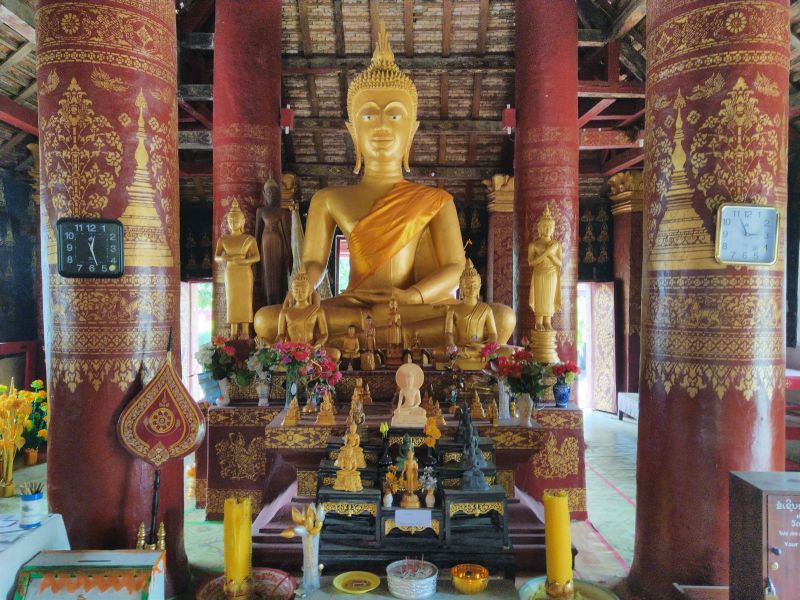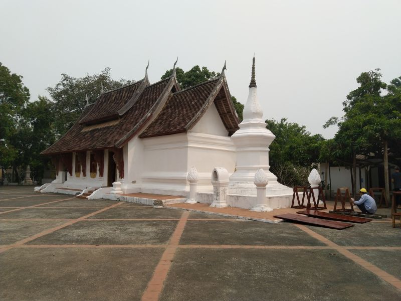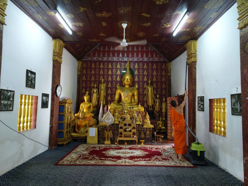 Dann starten wir unsere Wat-Wanderung III. Luang Prabang hat über 30 Wats! Die meisten fußläufig zu erreichen. Wir fangen im Nordosten am Zusammenfluß von Nam Khan und Mekong an und arbeiten uns Richtung Hotel zurück.