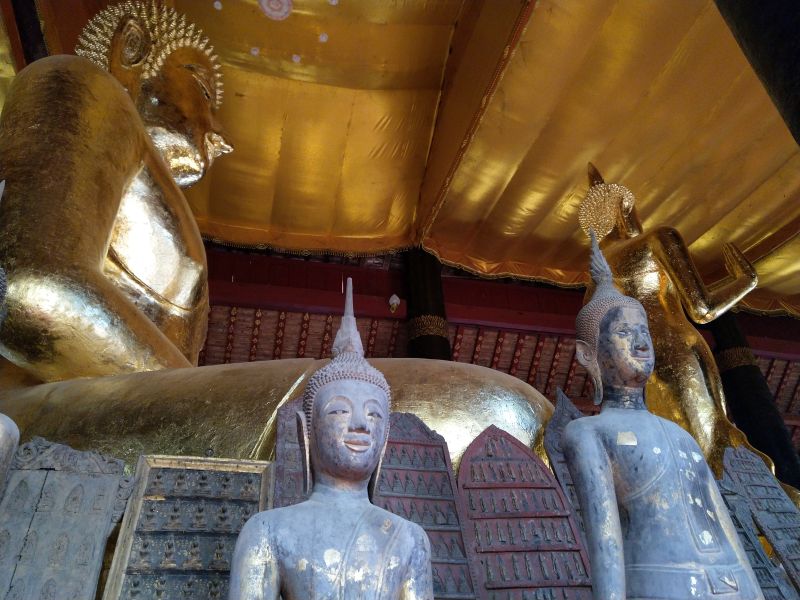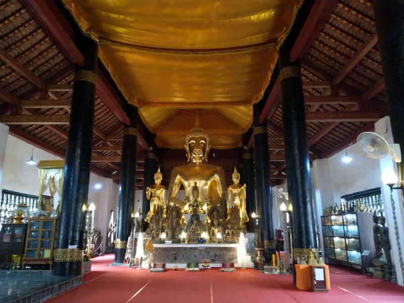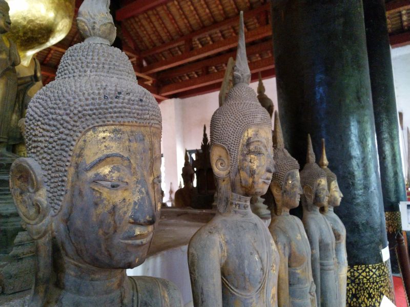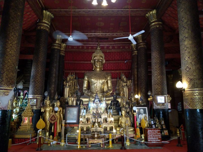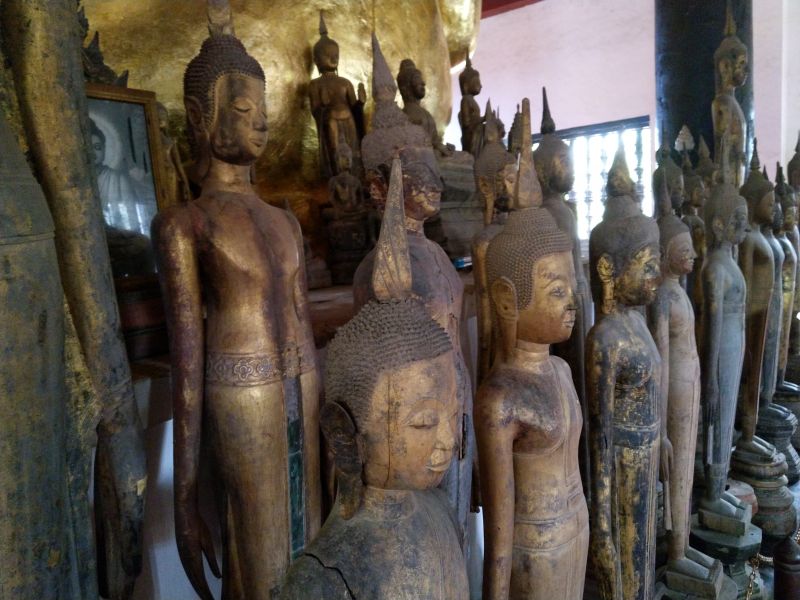 In der Nähe gibt es einige Wats die wir auch brav alle anlaufen und besichtigen. An Manche können wir uns erinnern, Andere sind neu für uns. Wie viele Wats wir gegen Mittag gesehen haben wissen wir gar nicht mehr. Einige stehen so dicht beieinander, dass man sie nicht unterscheiden kann. Erst wenn man weitere 20000 bezahlen muss kommt einem der Gedanke in einem neuen Wat zu sein. Ich denke hier in Luang Prabang sind die schönsten Wats und Buddhafiguren zu finden.
