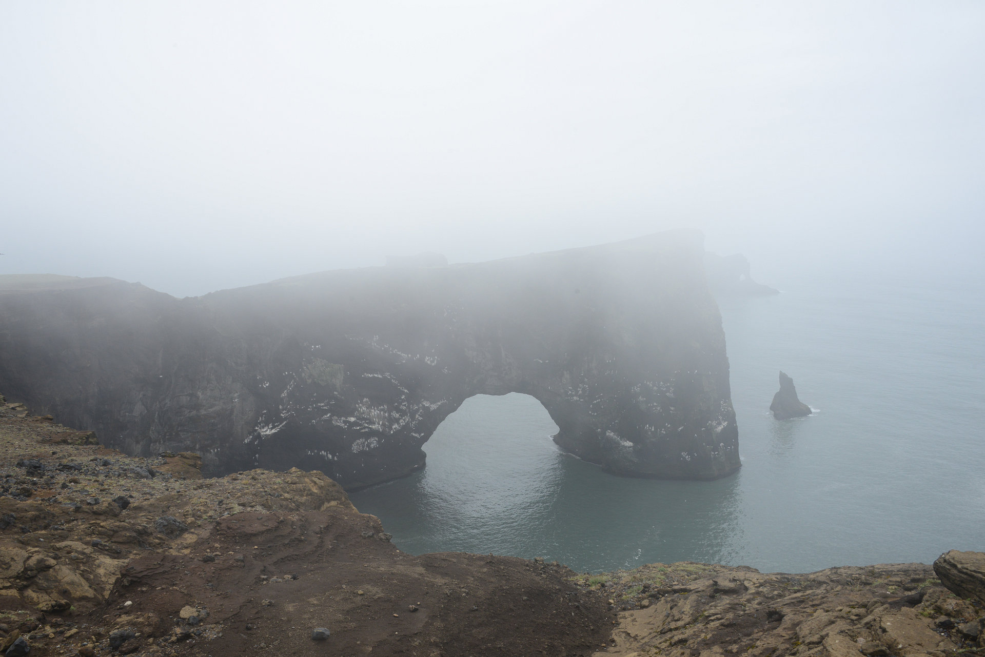 Dyrhólaey, von dem man auf das Felsentor und auf einen der (angeblich) 10 schönsten Strände der Welt schauen kann. Gestern hatten wir hier null Sicht und Regen - heute ist es deutlich besser. Wir parken am unteren Parkplatz, kostenfrei, und laufen hoch zum Leuchtturm. Sogar einen Papageientaucher, der hier nistet, sehen wir. Leider ziehen wieder Nebelschwaden auf und die Sicht wird weniger. Der